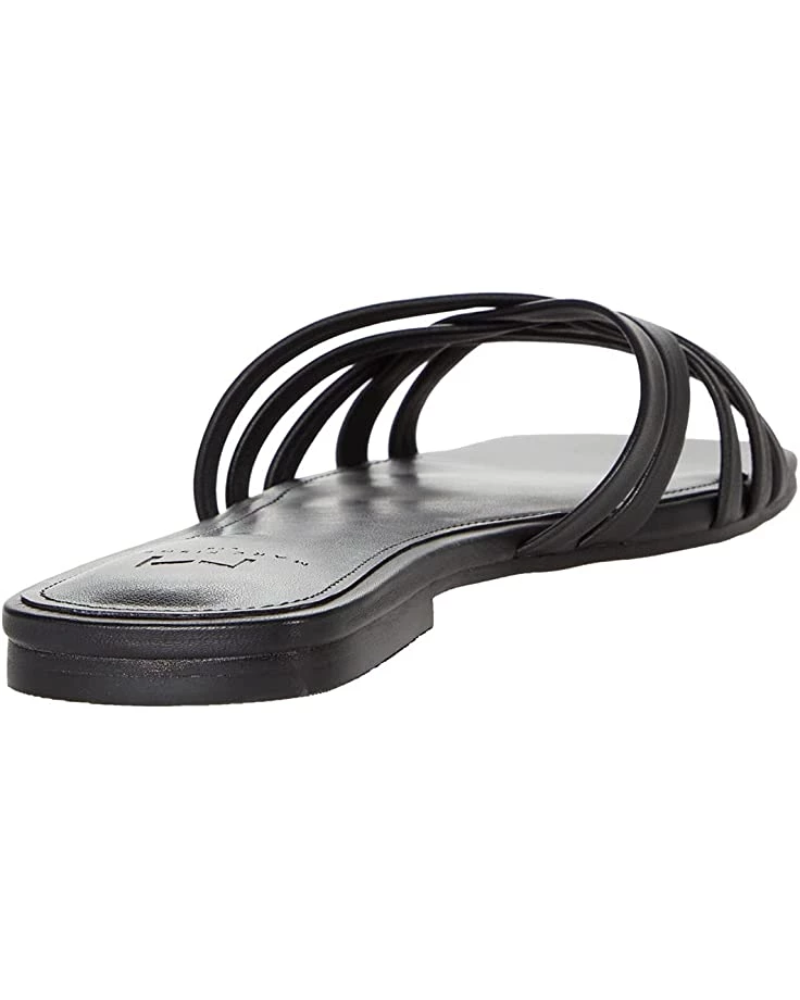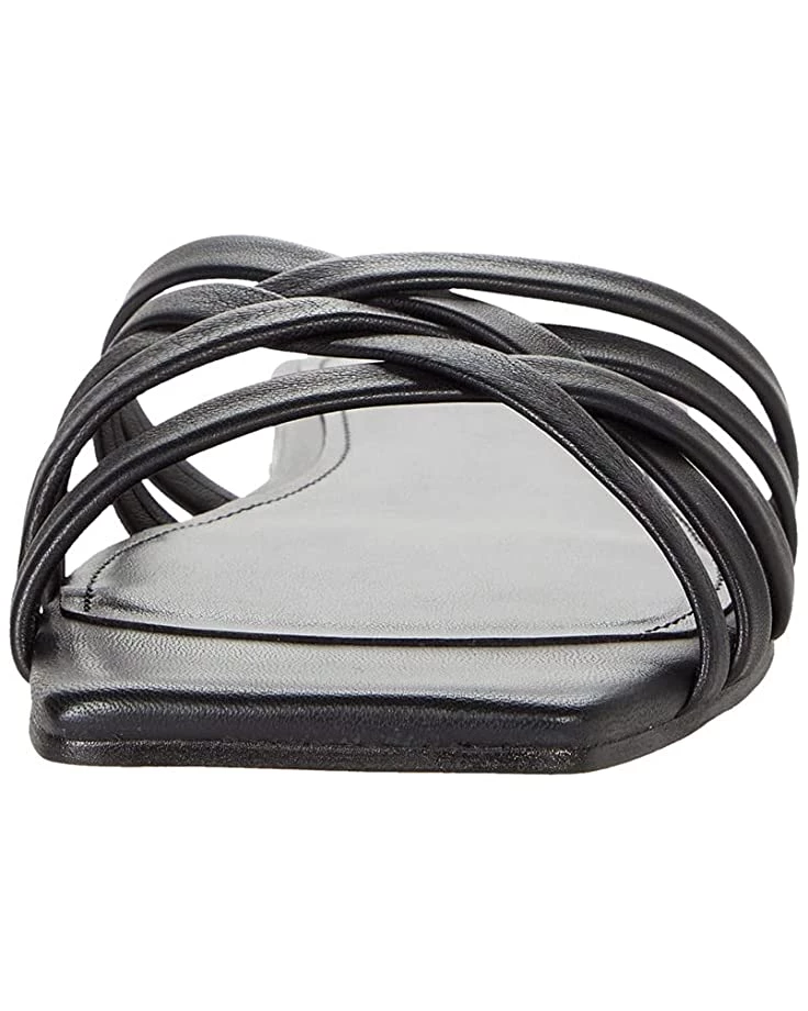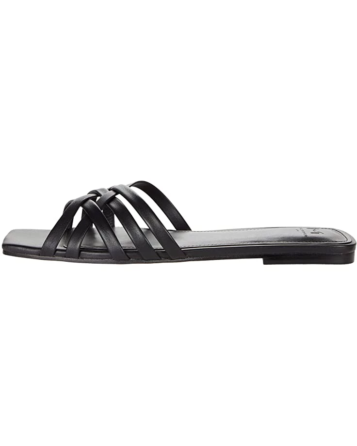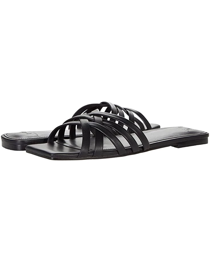 - Welcome warmer weather wearing the Marc Fisher LTD™ Varro featuring a classic square toe slip-on sandal boasting multi crisscross straps and a well bedded footbed for all day wear.