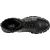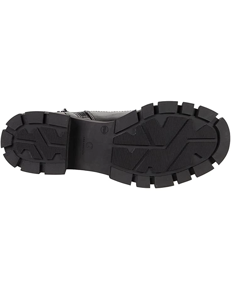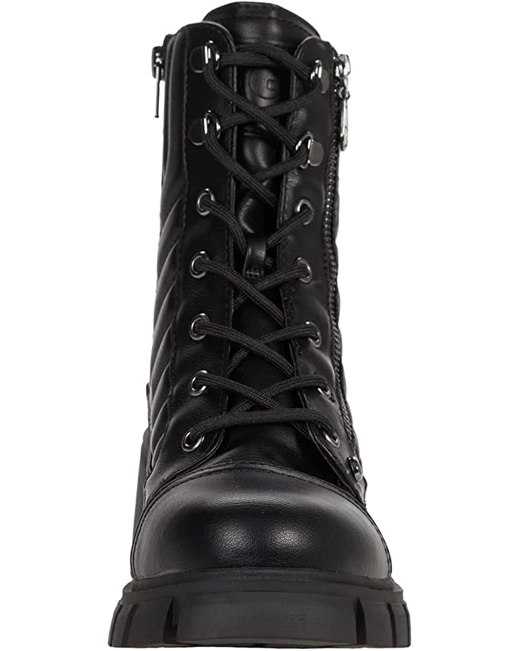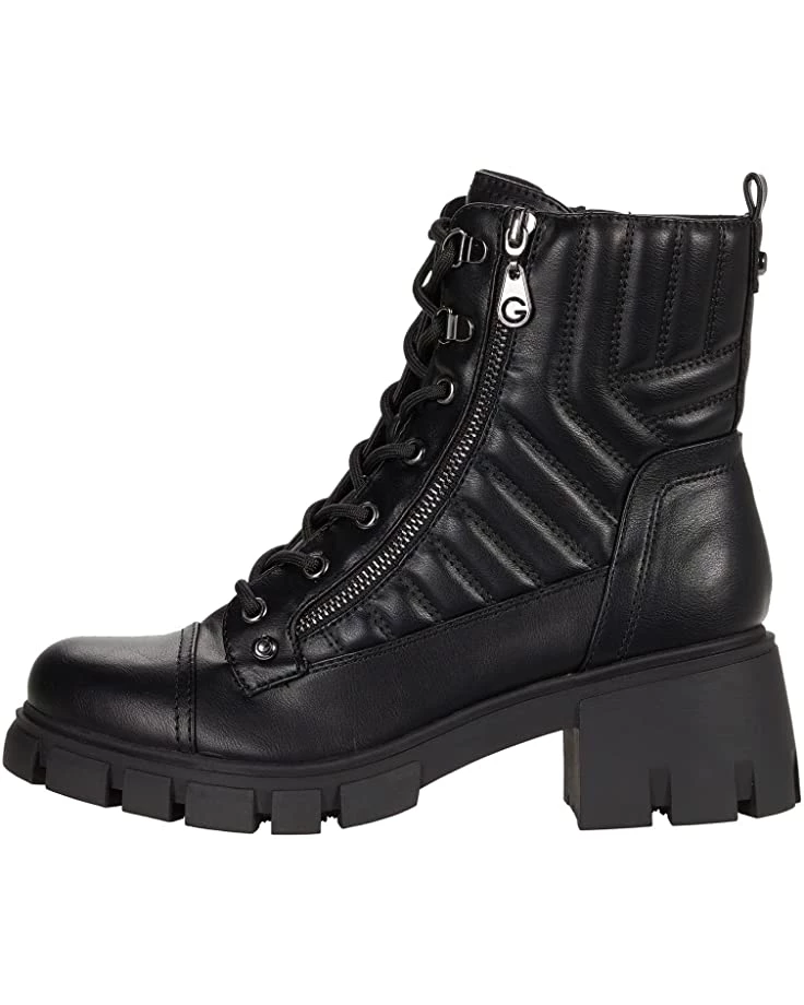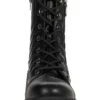 - Combat boot silhouette with traditional lace and zippered closures.