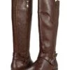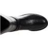 - Knee-high boots constructed from durable faux leather, with quilted detailing at back of shaft.