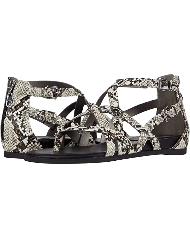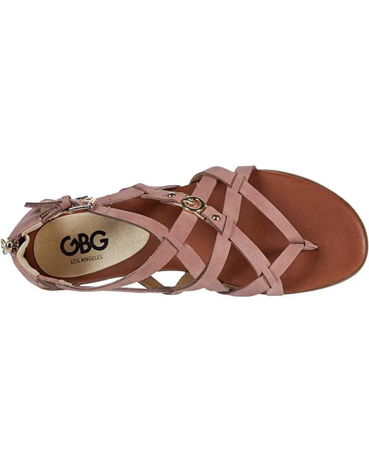 - Featuring a faux-leather upper and polished metal hardware, look and feel like a million bucks wearing the GBG Los Angeles Cobell zipper sandal with dual buckle closures.