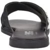 - Open-toe slide silhouette with a smooth man-made lining and a lightly padded footbed.