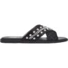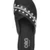 - Metal stud and chain decor will add a touch of tough-girl appeal to your summer style wearing the faux-leather GBG Los Angelesβ’ Nester slip-on sandal.