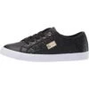 - Faux-leather upper with a quilted detail on the instep.