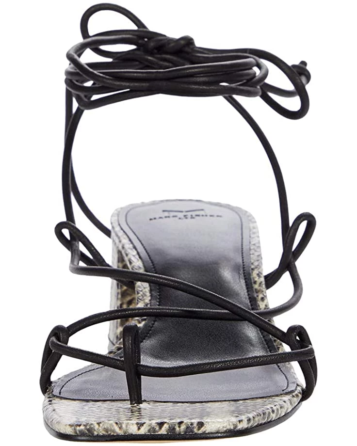 - The Marc Fisher LTDโข Jacinda is a walkable block heel that grounds a barely-there sandal with slender laces that tie up and around the ankle.