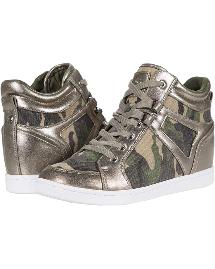 - Featuring a hidden wedge and faux-leather overlays, don’t miss out on the textile GBG Los Angeles Daynie lace-up sneaker in a high-top silhouette.